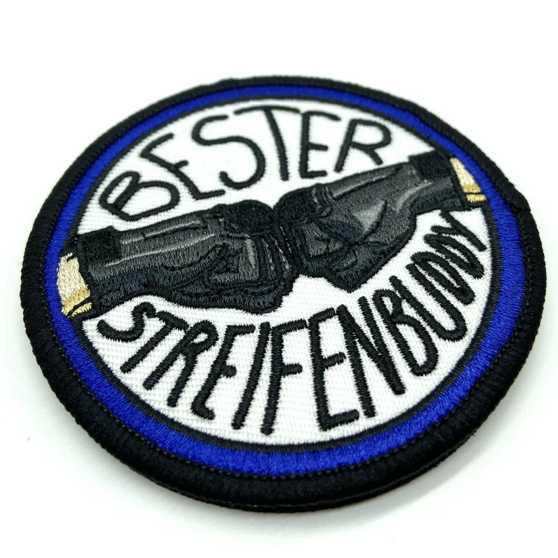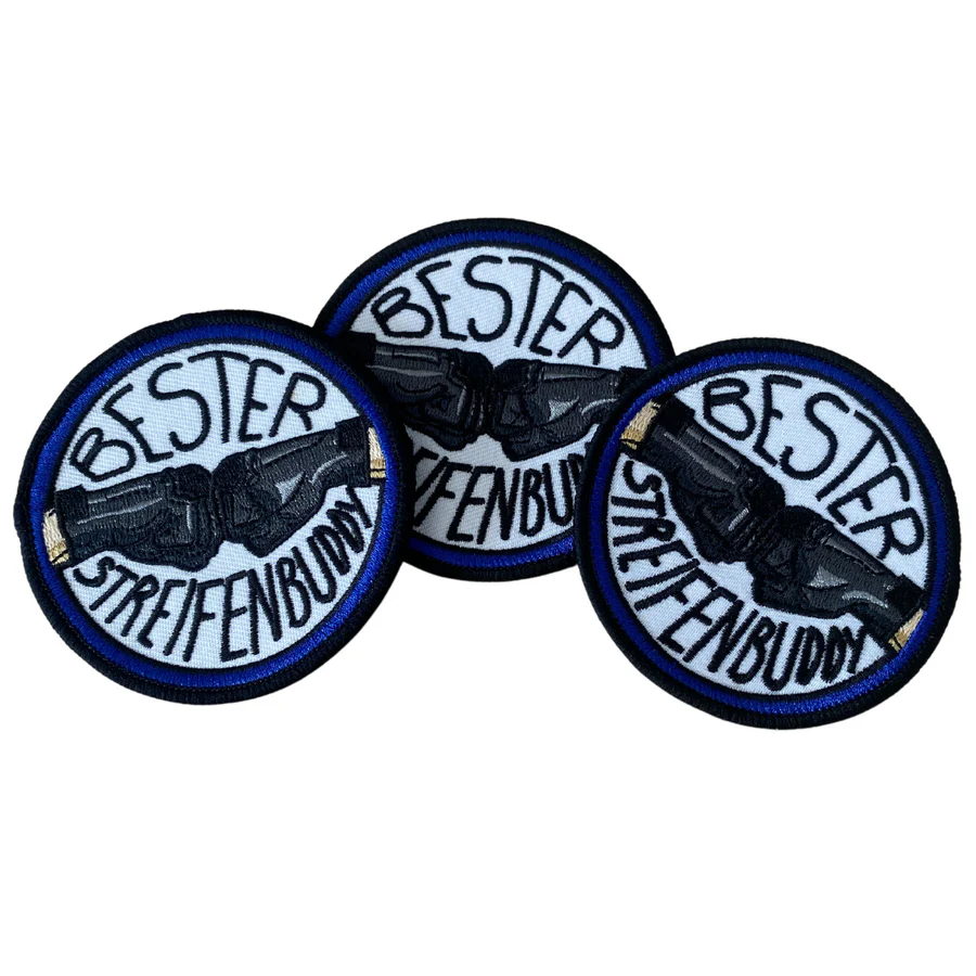 Der Textilpatch „Wer ist dein bester Streifenbuddy?“ ist ein hochwertig gefertigter Klettpatch mit klarer Botschaft – robust, langlebig und vielseitig einsetzbar.
