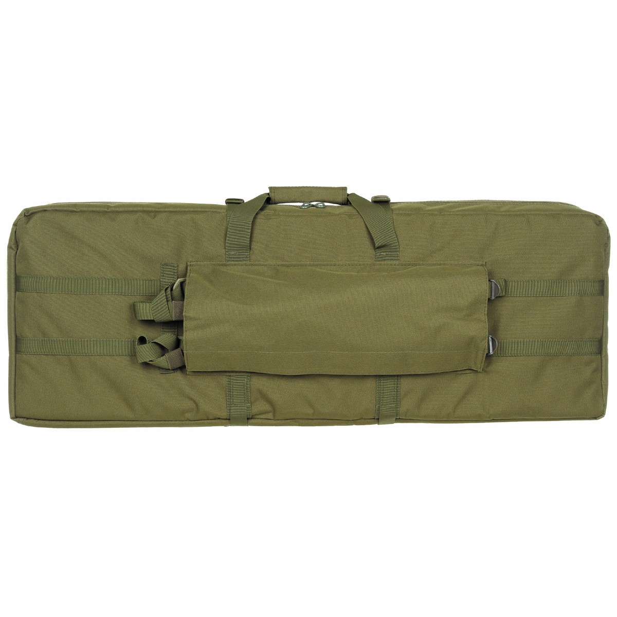 Das großzügige Hauptfach mit 2-Wege-Reißverschluss und gepolsterter Trennwand ermöglicht eine sichere und übersichtliche Unterbringung der Waffen. Auf beiden Seiten sorgen Klettriemen und Einschubtaschen für eine stabile Fixierung. Eine aufgesetzte Außentasche mit MOLLE-Aufnahmeschlaufen bietet zusätzlichen Stauraum für Zubehör.